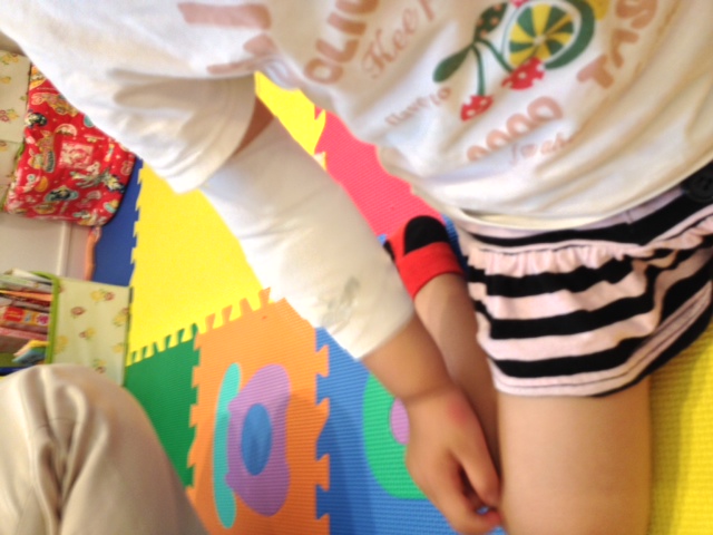 すぐに患部も使って遊びはじめましたが、様子見の為、キッズスペースでしばらく遊んでもらいました。